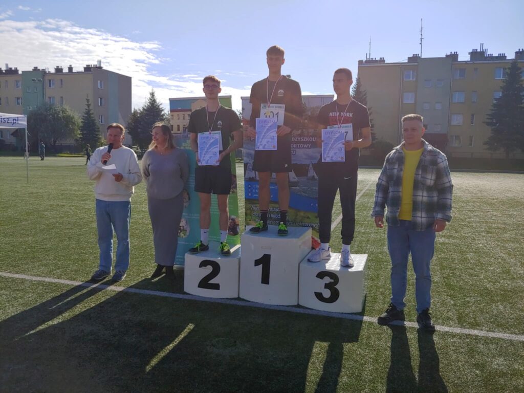Na początku zawodów odebraliśmy puchar za I miejsce w końcowej rywalizacji szkół ponadpodstawowych w roku szkolnym 2024/2025. Zdobyliśmy łącznie 1278 punktów, 2 miejsce zajęło I LO Pisz – 757 punktów, natomiast 3 miejsce II LO Pisz z sumą 440 punktów.